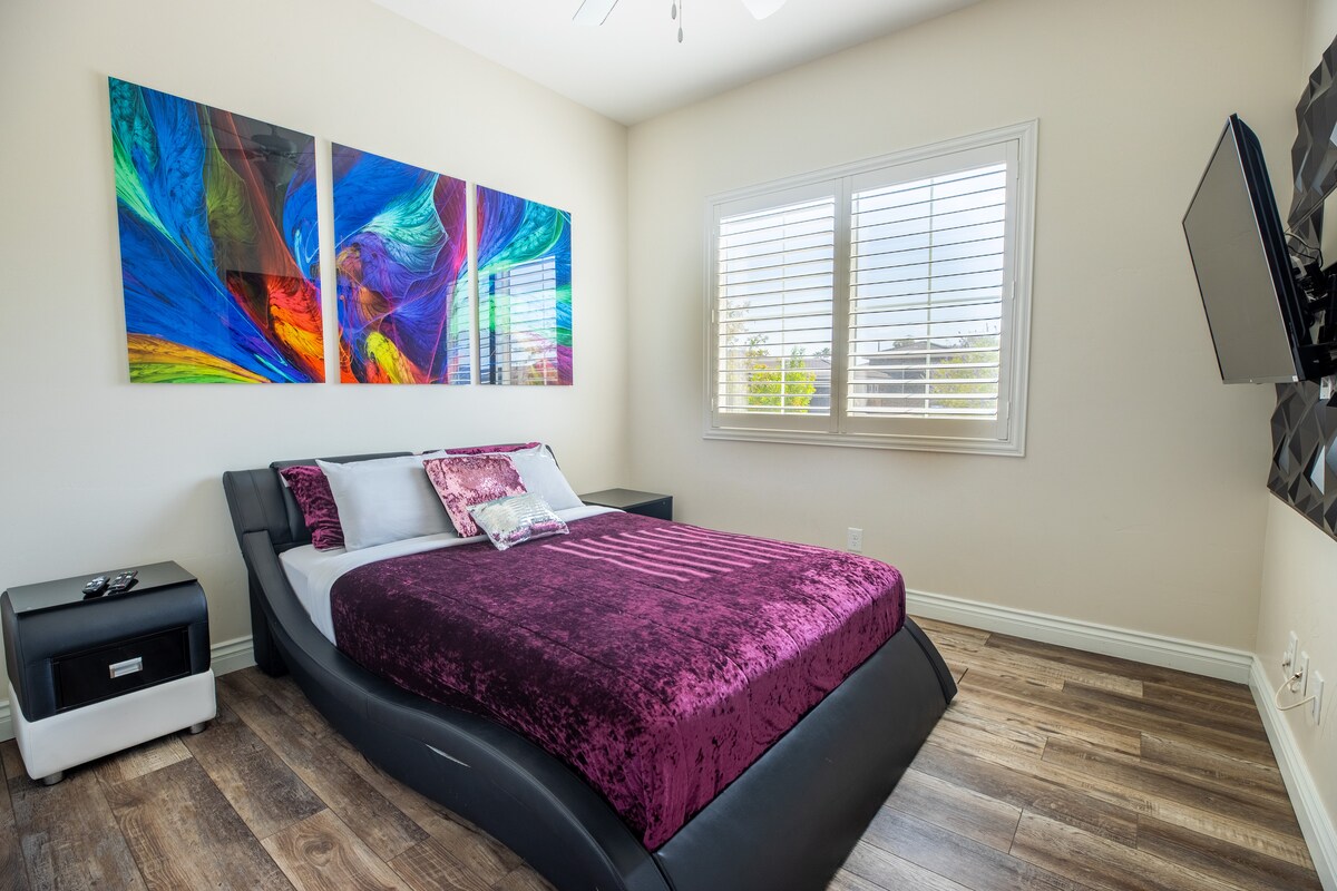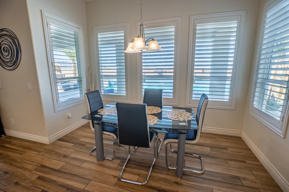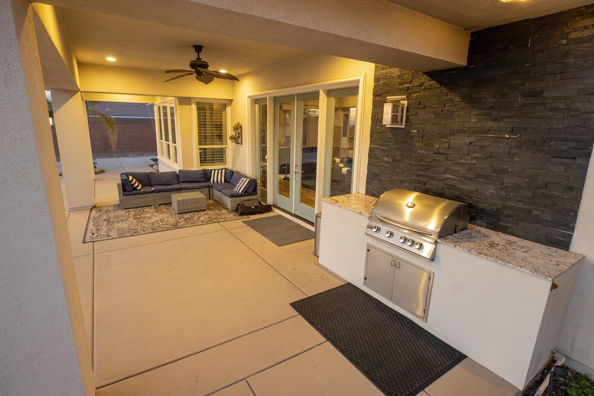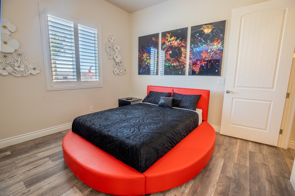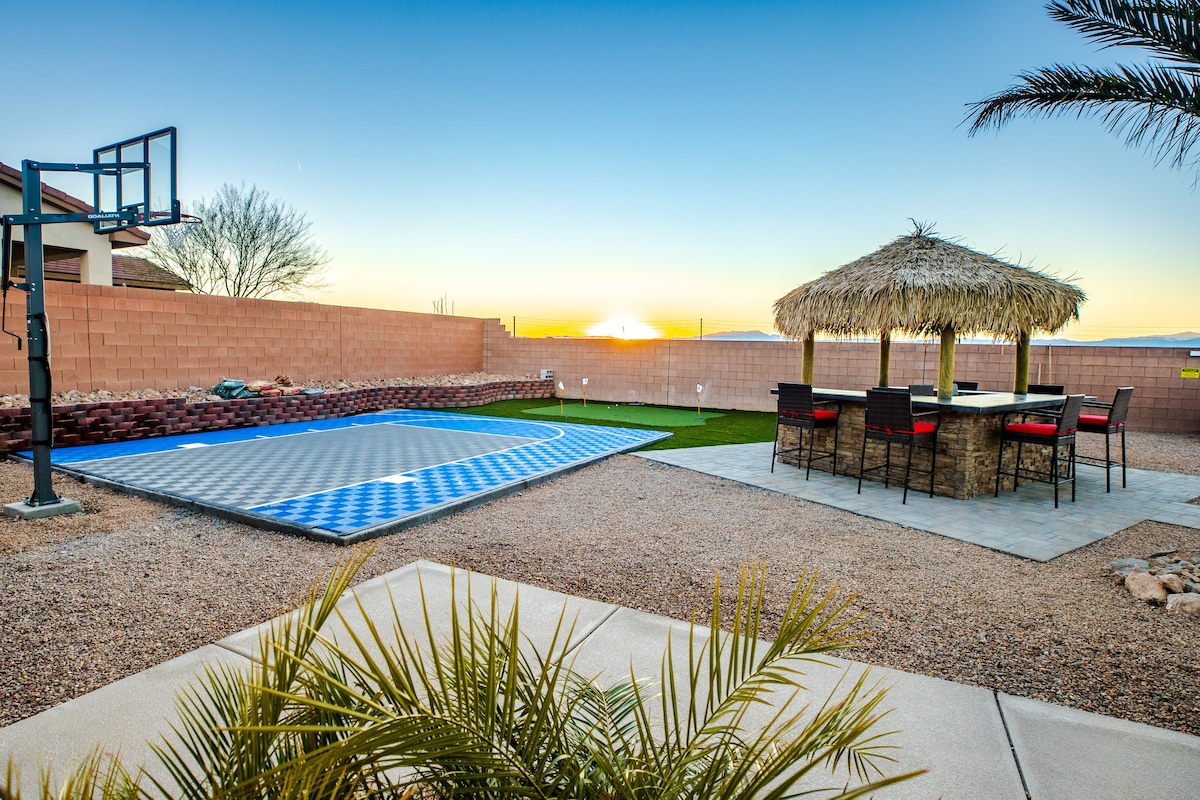 HendersonWelcome to my modern completely remodeled 3400 square foot house! Strip views from the backyard, master bedroom and living room. Very spacious and accommodates up to 12 people comfortably. 40 foot heatable pool and jacuzzi. Basketball court, golf putting green and a huge kitchen island. Has 5 bedrooms with 4 of them having an in suite personal bathroom. High speed internet and a basic cable subscription. Each Bedroom has it's own smart TV and the living room has a huge smart TV.