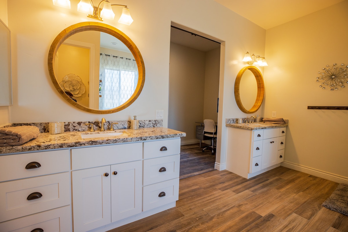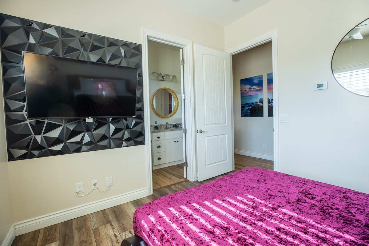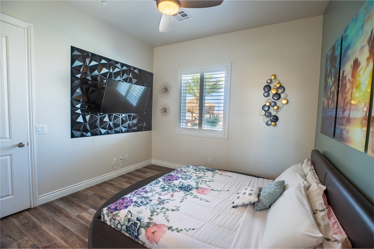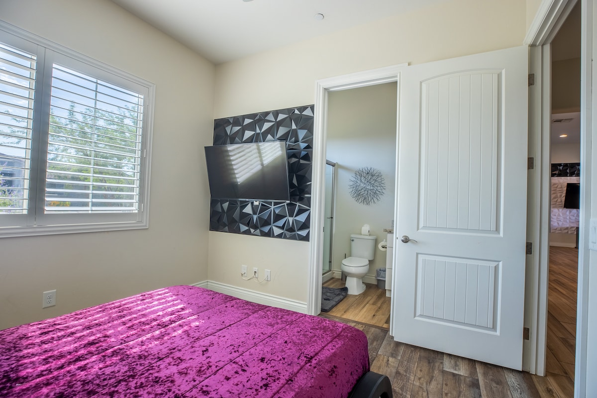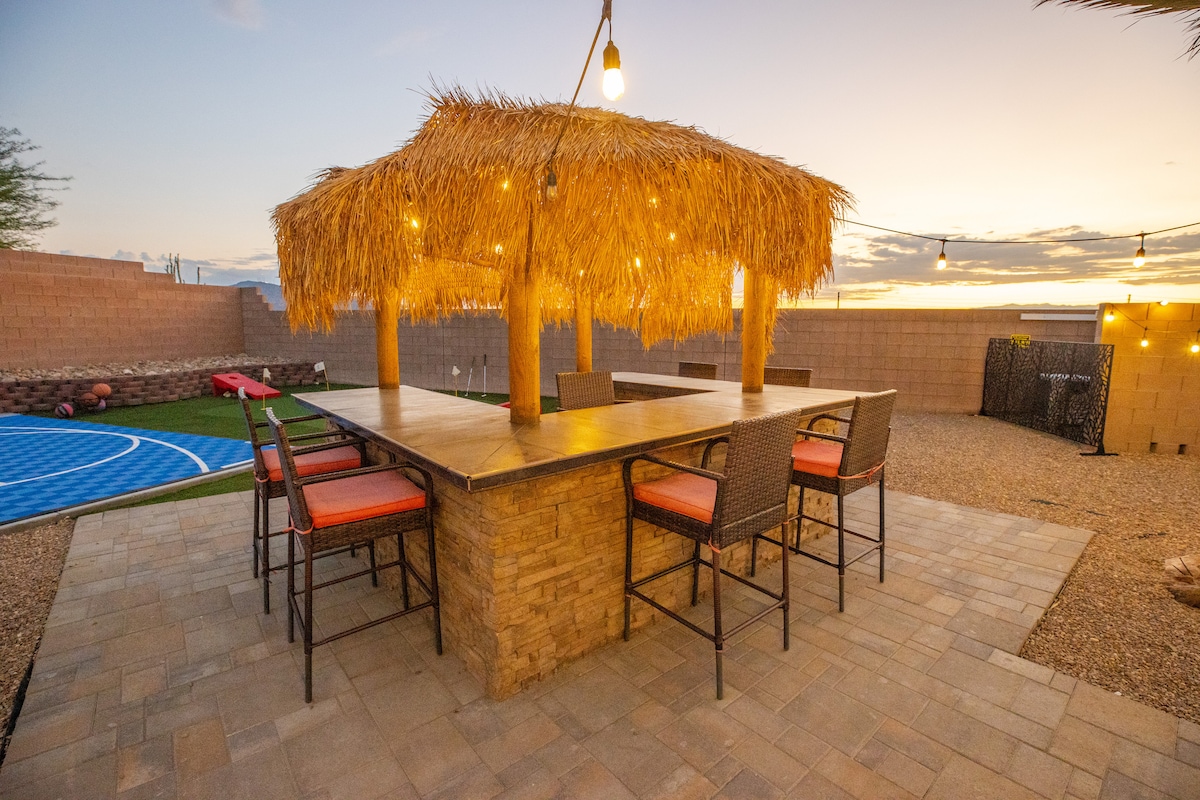 HendersonWelcome to my modern completely remodeled 3400 square foot house! Strip views from the backyard, master bedroom and living room. Very spacious and accommodates up to 12 people comfortably. 40 foot heatable pool and jacuzzi. Basketball court, golf putting green and a huge kitchen island. Has 5 bedrooms with 4 of them having an in suite personal bathroom. High speed internet and a basic cable subscription. Each Bedroom has it's own smart TV and the living room has a huge smart TV.