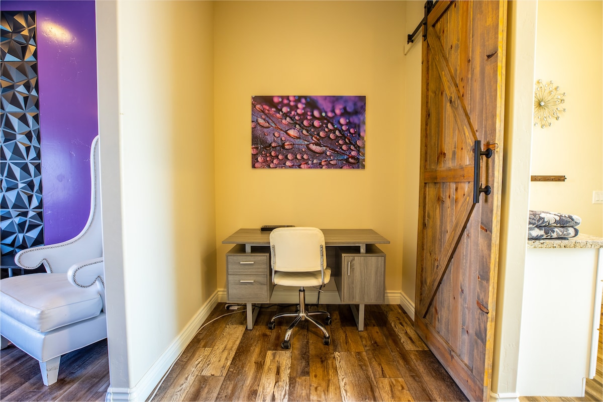 - Laptop-friendly workspace