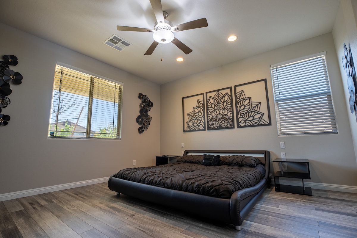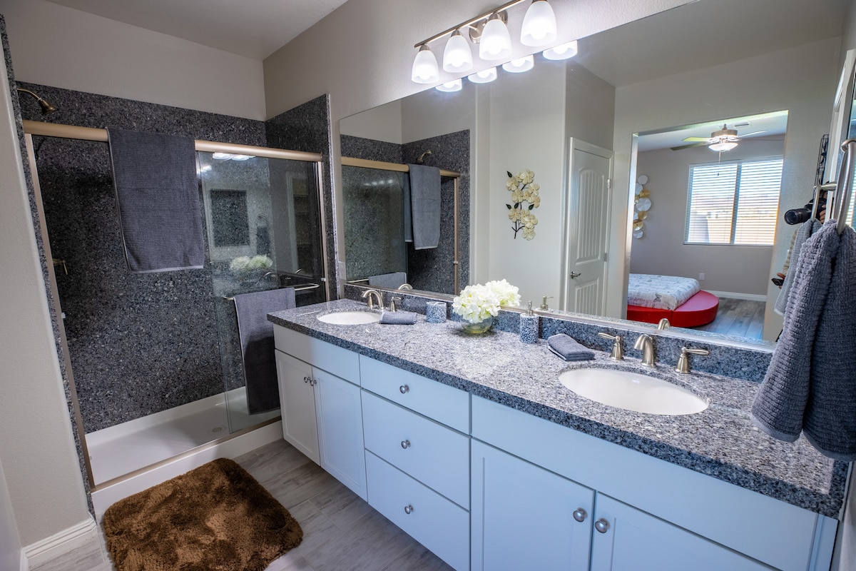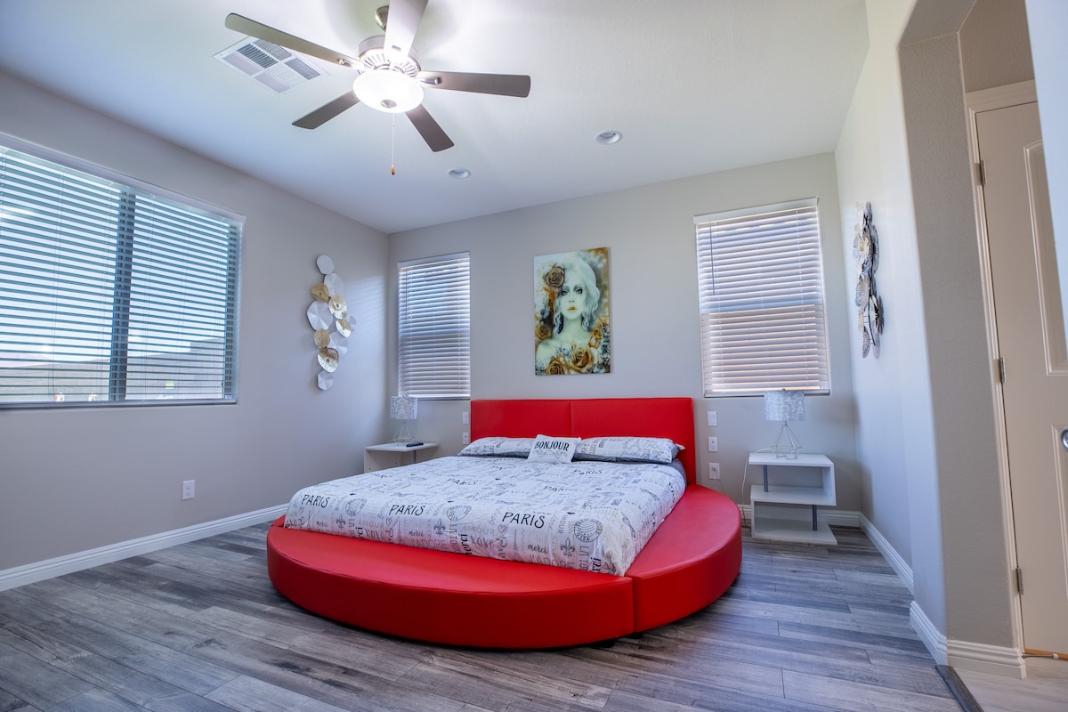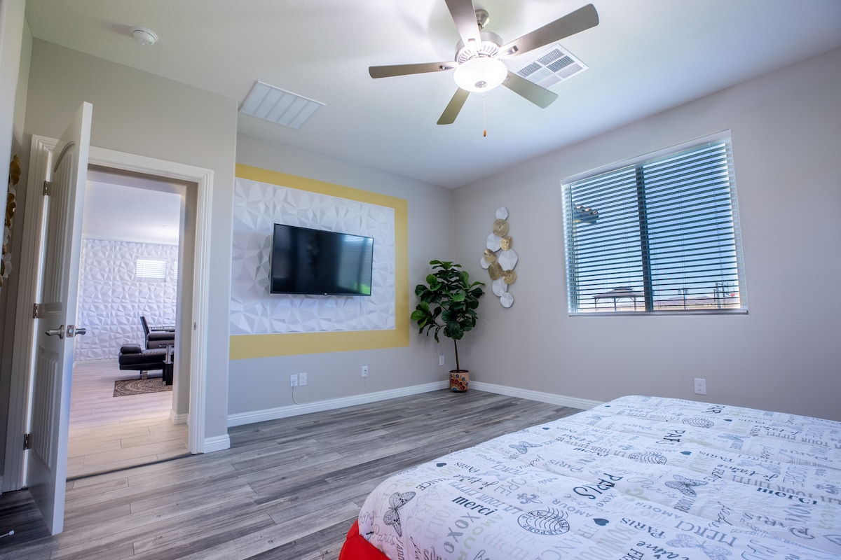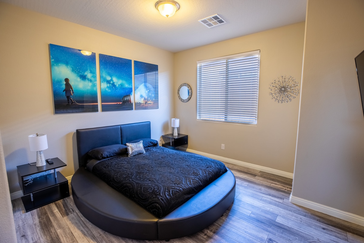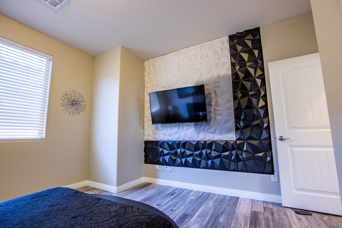 HendersonWelcome to my modern completely remodeled 1900 square foot house!. Basketball court, golf putting green and a decking with a strip view. Sunken pit sitting area. House was built in 2019 and nobody lived in it until 2022. Amazingly beautiful views from the backyard and house. Very spacious and accommodates up to 8 people comfortably. 25 foot heatable pool and jacuzzi. High speed internet and a basic cable subscription. Each bedroom has it's own smart TV and the living room has a huge smart TV.