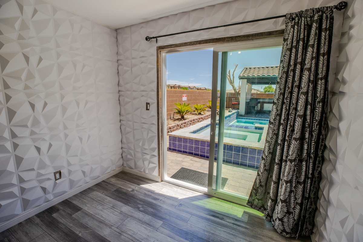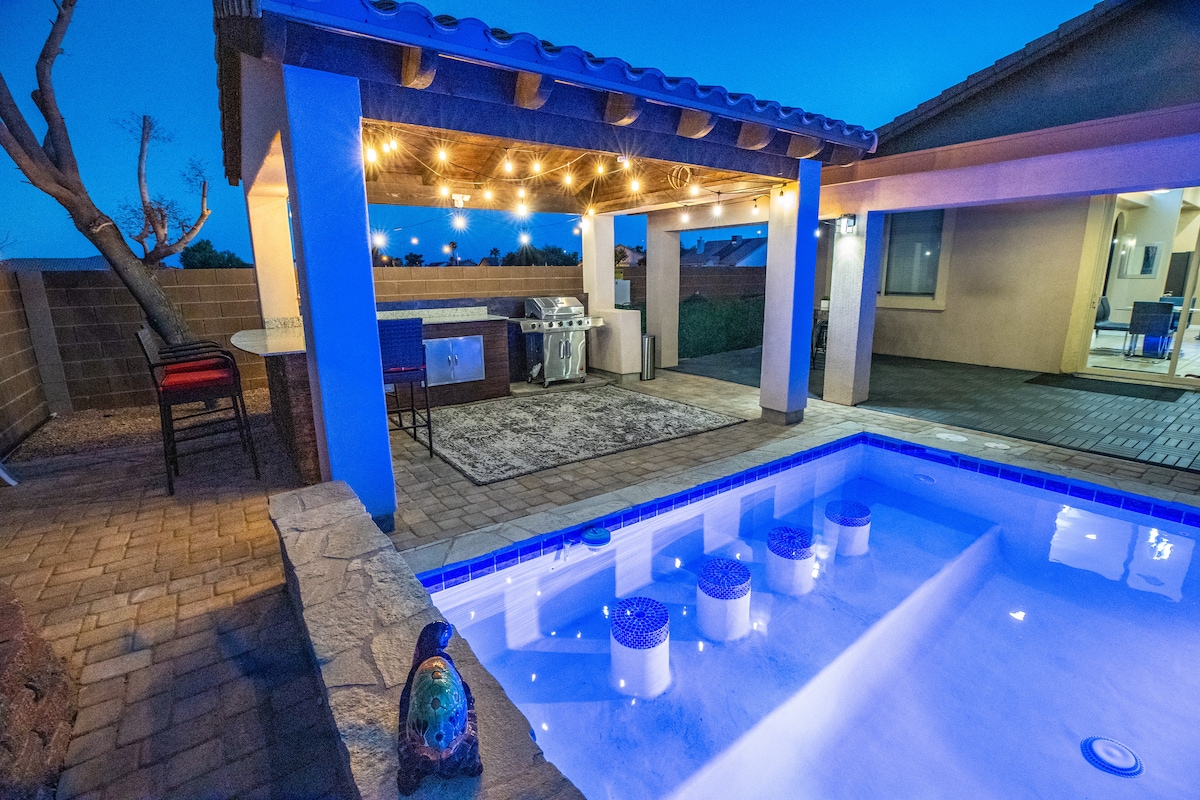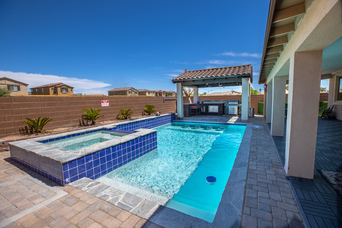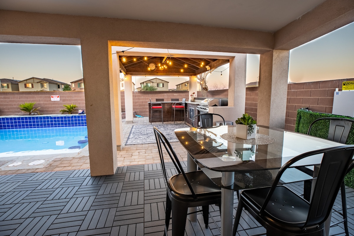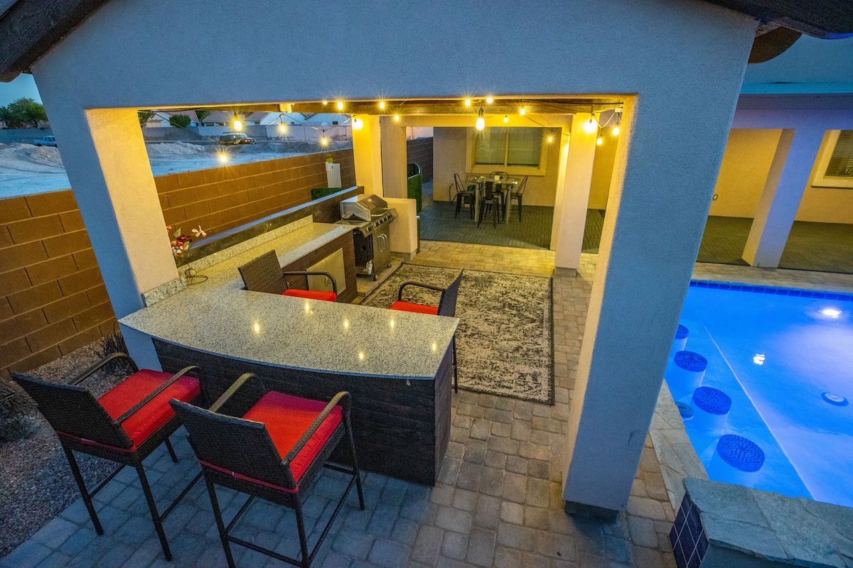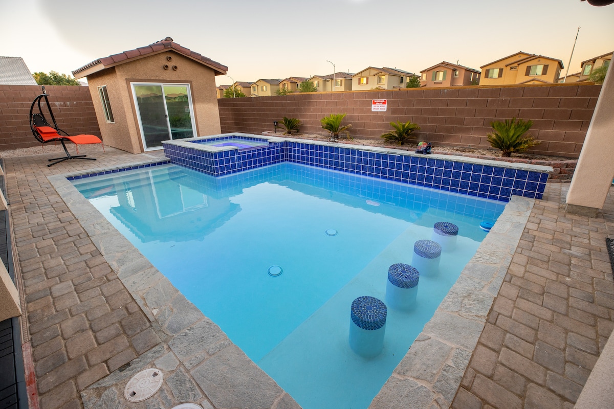 North Las VegasWelcome to my modern completely remodeled 2700 square foot house! Very spacious and accommodates up to 10 people comfortably. 25 foot heatable pool and jacuzzi. Great outdoor BBQ Patio. High speed internet and a basic cable subscription. 4 Bedrooms have their own smart TV's and the living room has a huge smart TV.